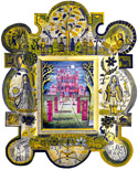 He seeks out the eccentric, the lost and the overlooked – vanished buildings, follies, centuries old text, ancient imagery – and uses them as starting points for vibrant paintings and prints that explore themes of renewal, reinvention and the passing of time.