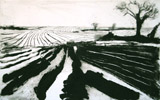Rory’s prints and paintings are a response to the landscape surrounding his Norfolk home – reacting to the ‘elemental’ and often harsh qualities of the Norfolk landscape; from the half-flooded fields in winter, muddy tracks, oak trees reflected in puddles to the patterns made by ploughing, often contrasted with almost geometric industrial farm buildings.